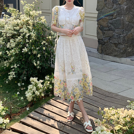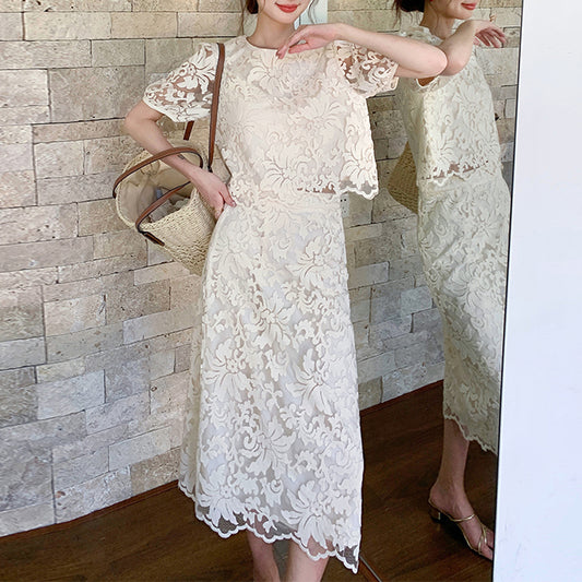 Heavy Embroidered Lace Top And Skirt Two-Piece Set