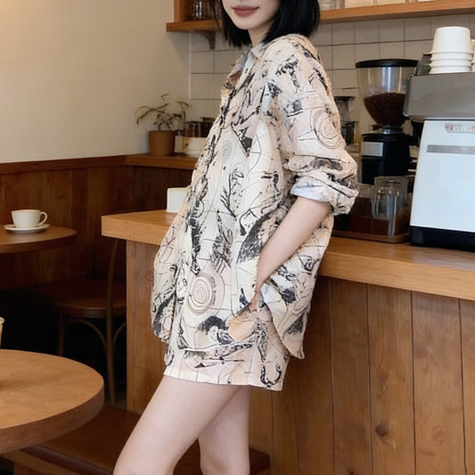 Fashion Loose Long-Sleeved Shirt Two-Piece Suit