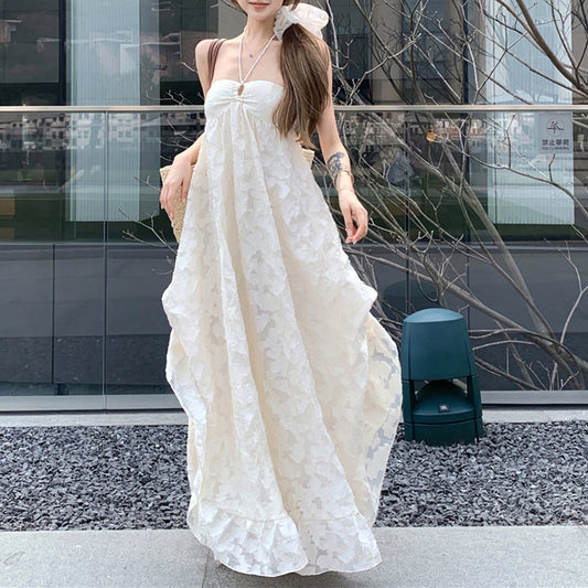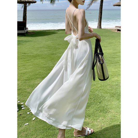 White Sexy Backless Spaghetti-Strap Vacation Dress