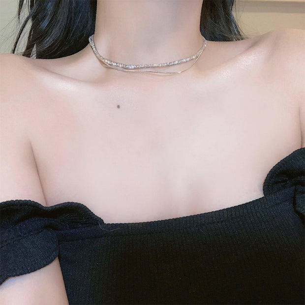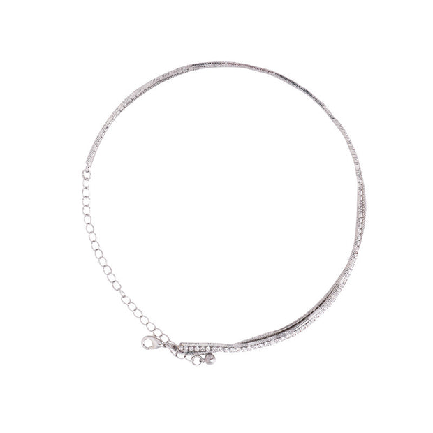 Color: Multilayer Snake Bone Chain Rhinestone Necklace
