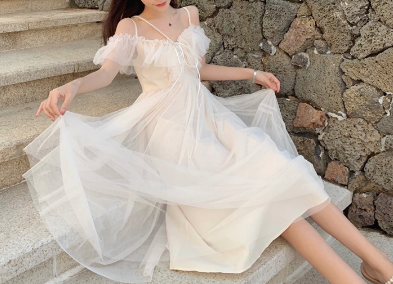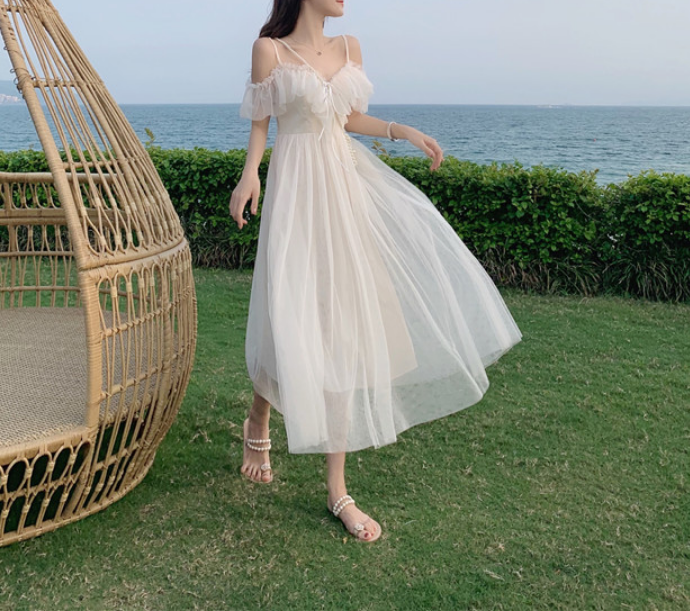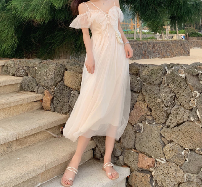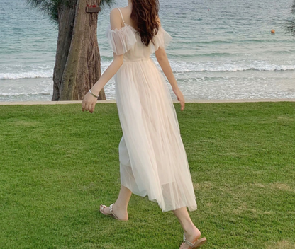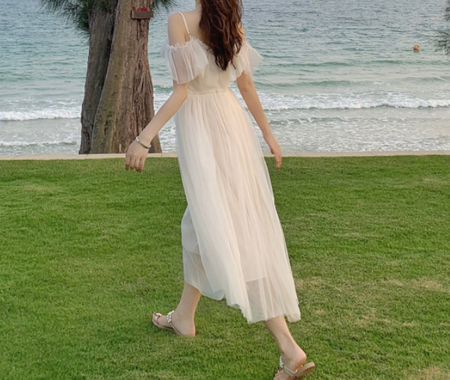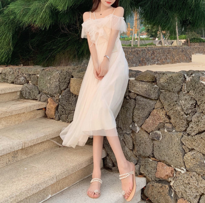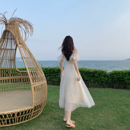 Summer Vacation Slim Off-The-Shoulder Slip Dress