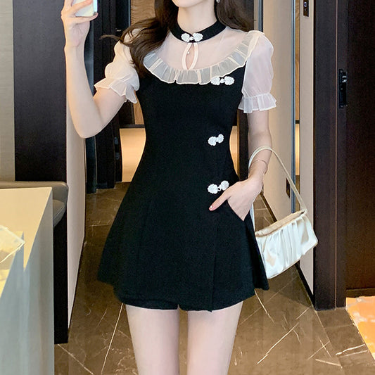 Mesh Backless Pearl Irregular Cheongsam Dress