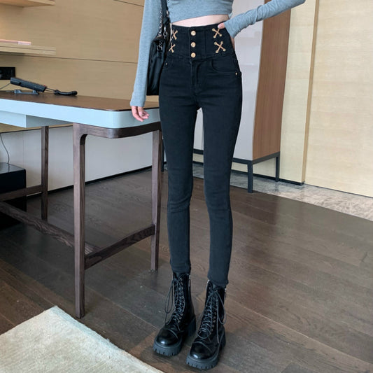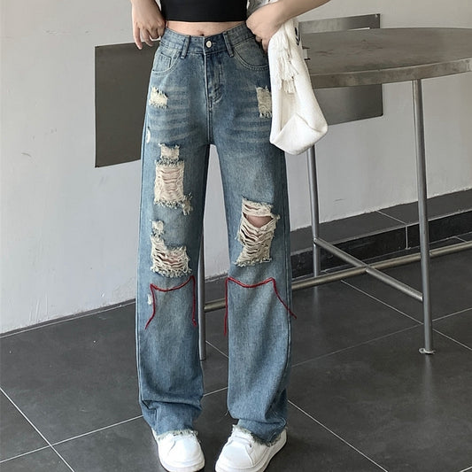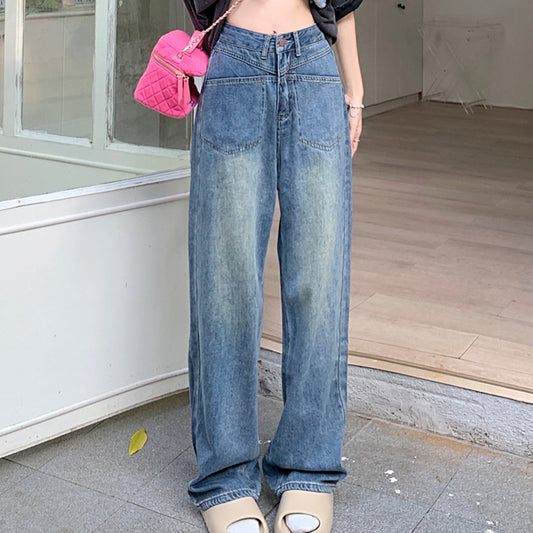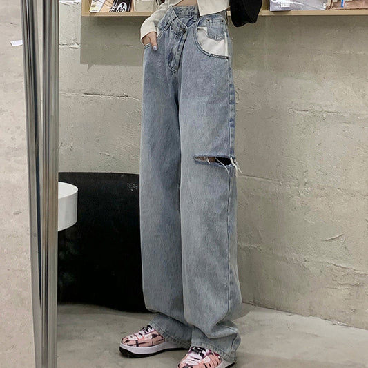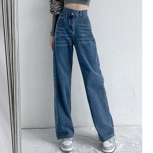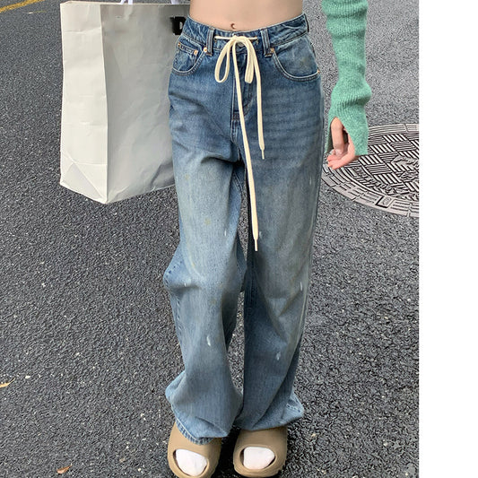 High Waist Loose Lace-Up Wide-Leg Casual Jeans