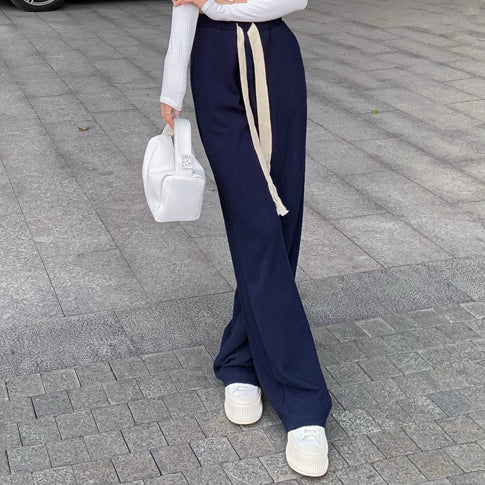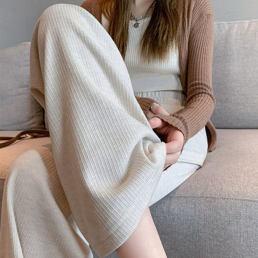 Wide-Leg Pants High Waist Straight Cashmere Trousers