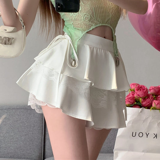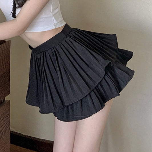Puffy Skirt Double Layer Pleated Cake Culottes Shorts
