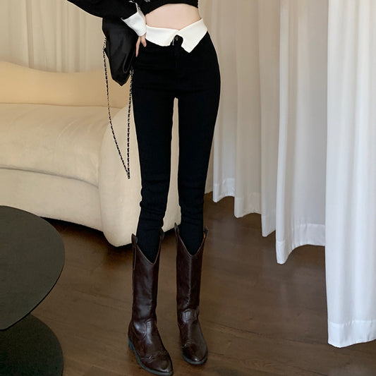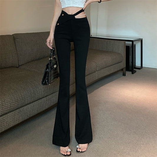 Trendy Pants Fold Up Waist Black Pull Up Trousers