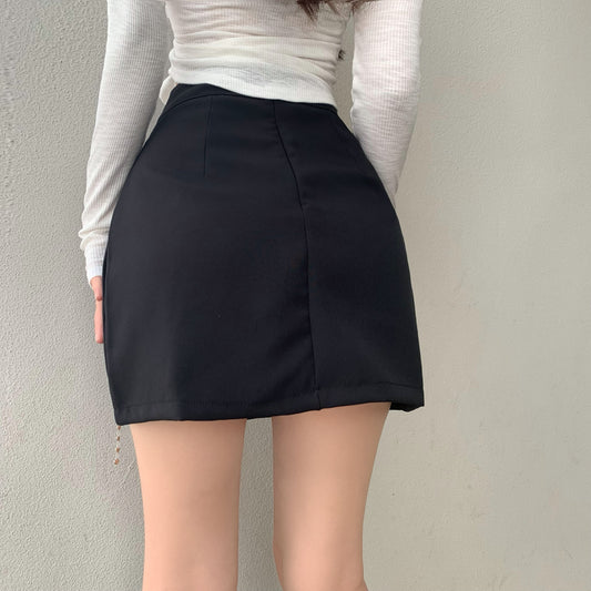 High Waist Bag Hip Split Straight Black Casual Shorts
