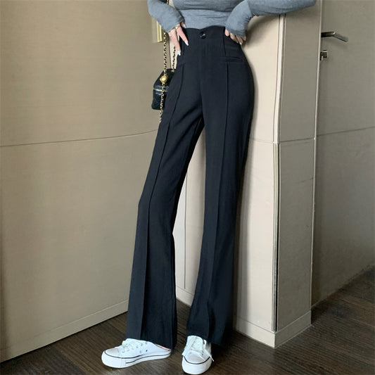Solid Color Suit Slit Pants High Waist Wide Leg Pants
