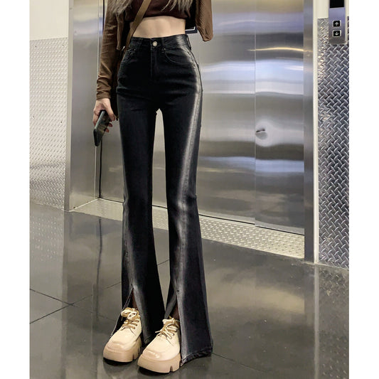 High Waist Jeans Straight Fit Micro Flare Long Pants