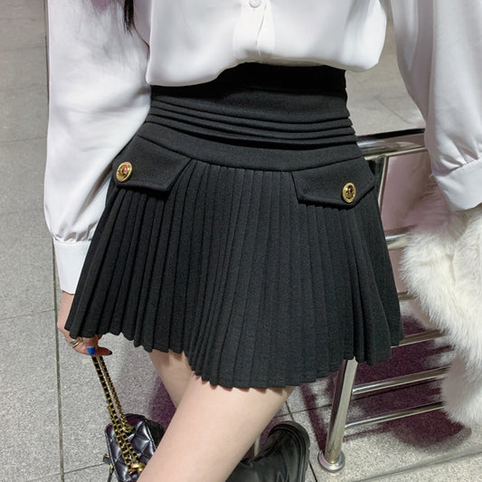 Plaid High Waist Chain Small Bag Pleated Skirt