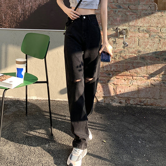 Retro Gradient Black Jeans Cuffed Wide Leg Trousers