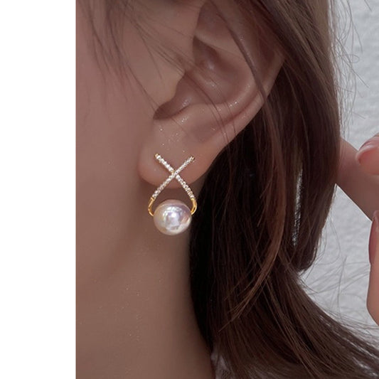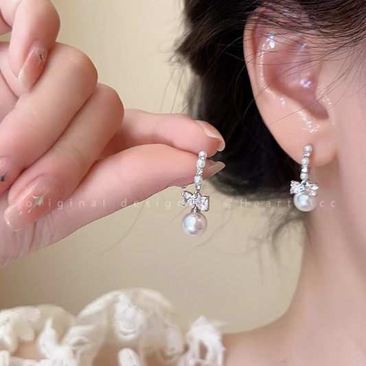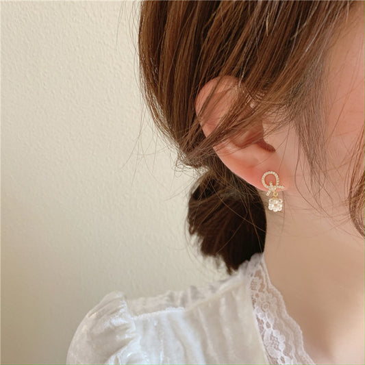 Bow Zircon Pearl Stud Earrings Versatile Ear Accessories