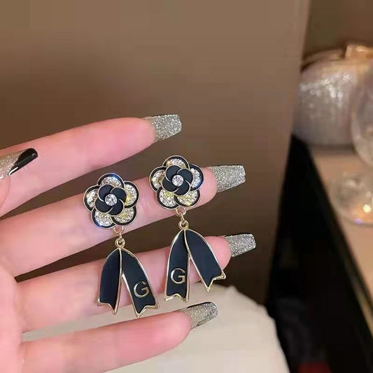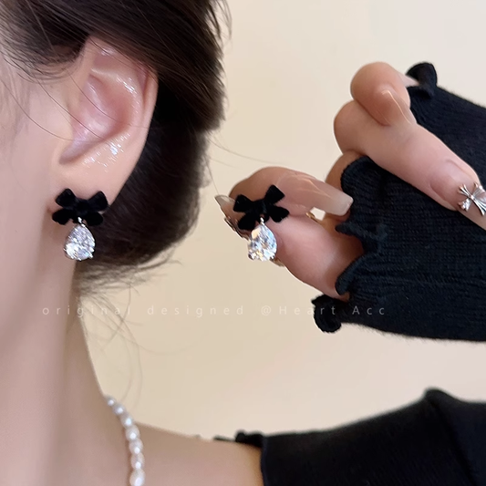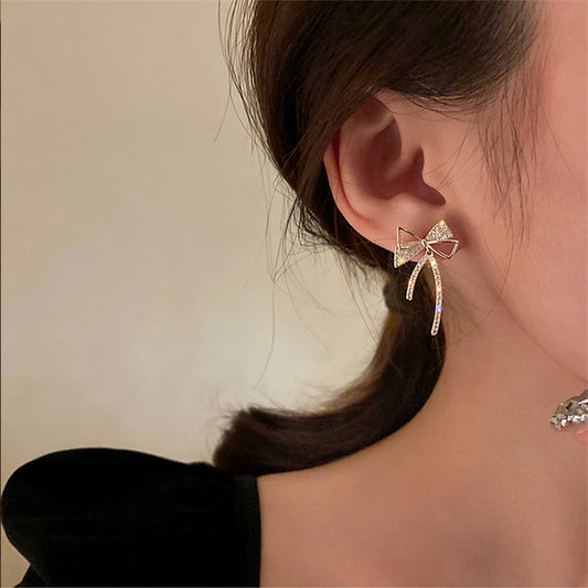 Flocked Bow Zircon Temperament Exquisite Retro Earrings