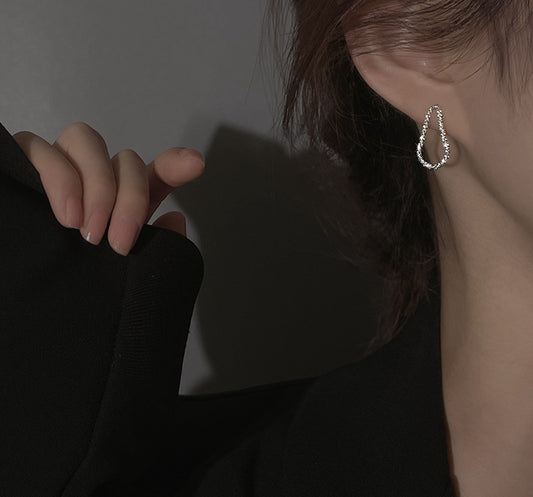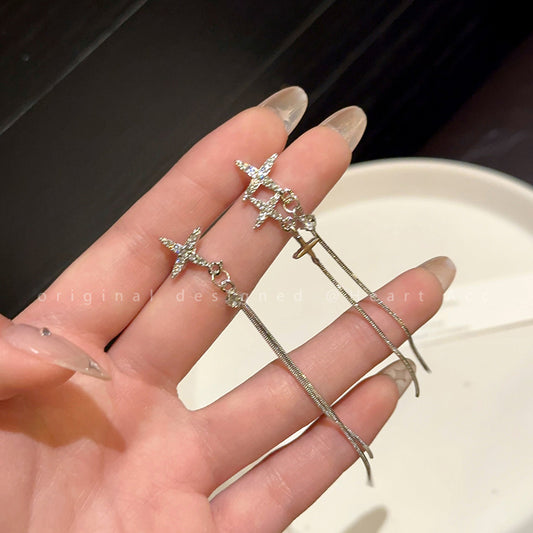 Irregular Cross Zircon Tassel Silver Needle Stud Earrings