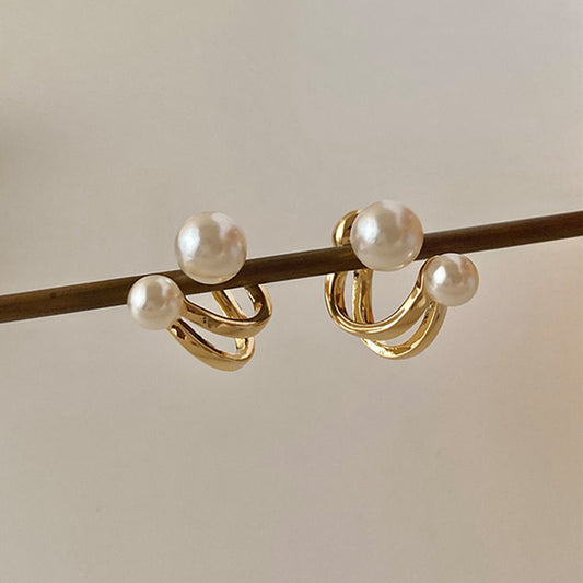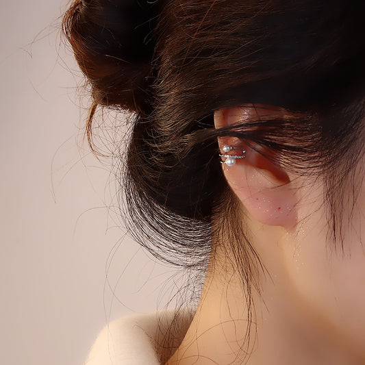 Multilayer Zircon Pearl Ear Bone Clip Earrings