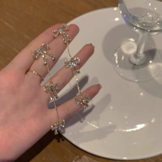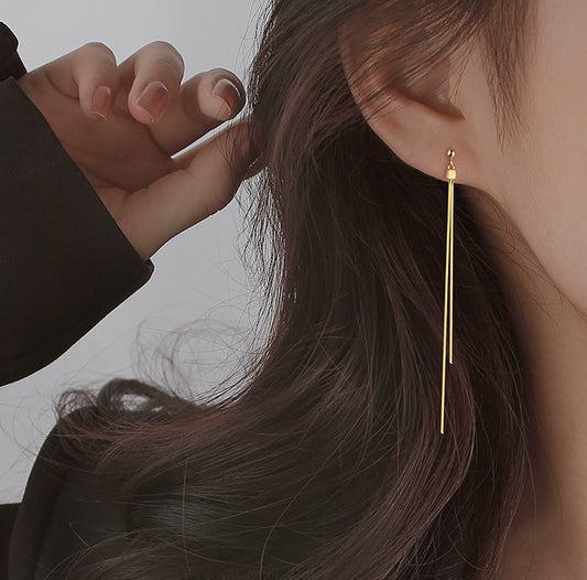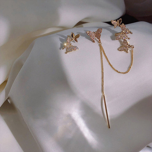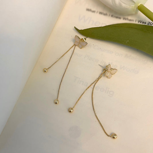 Retro Long Tassel Butterfly Stud Earrings Simple And Sweet Back Hanging Earrings