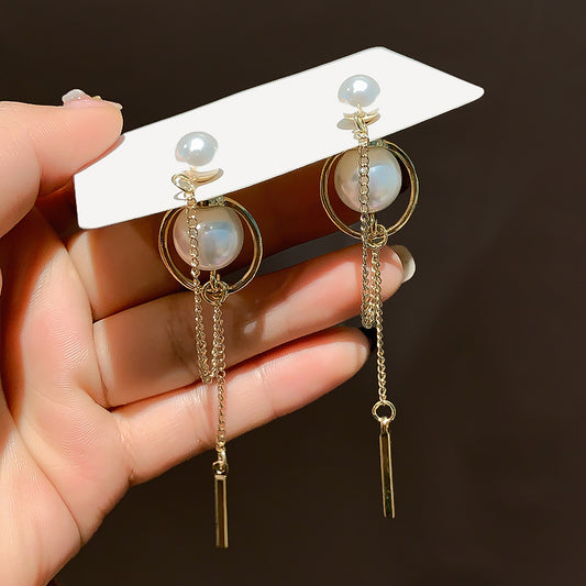 Pearl Tassel Temperament Long Earrings Versatile Round Face