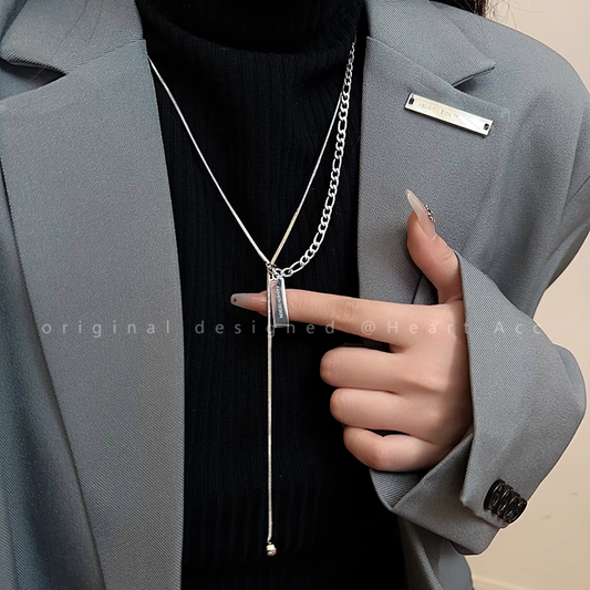 Tassel Tag Titanium Steel Splicing Necklace Sweatshirt Chain