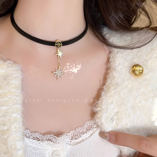 Eight-Pointed Star Pu Leather Necklace Choker Clavicle Chain