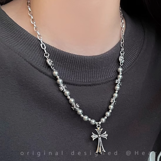 Pearl Cross Stitching Necklace Sweatshirt Chain