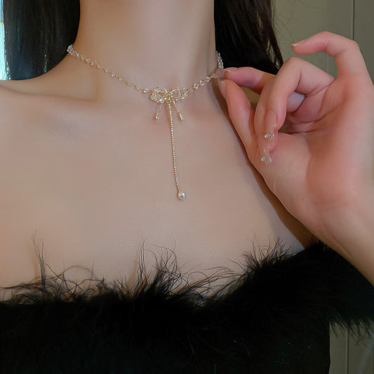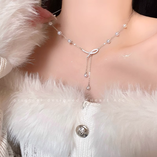 Pearl Tassel Bow Necklace Clavicle Fashionable Sweater Chain