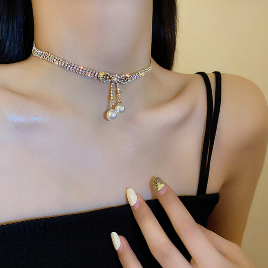 Bow Knot Pearl Necklace Clavicle Chain Accessories