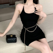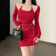 Color: Red Dress + Chain + Red Cardigan, Black Dress + Chain + Black Cardigan, Red Dress + Chain (No Cardigan), Black Dress + Chain (No Cardigan), Red Cardigan (No Dress + Chain), Black Cardigan (No Dress +Chain)