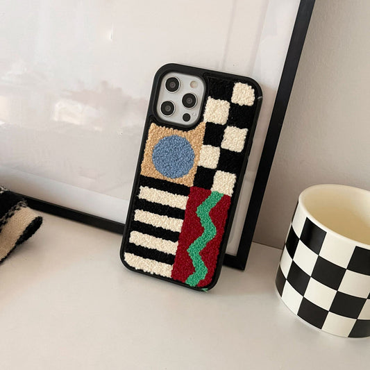 Contrast Color Plaid Pattern Silicone iPhone Case