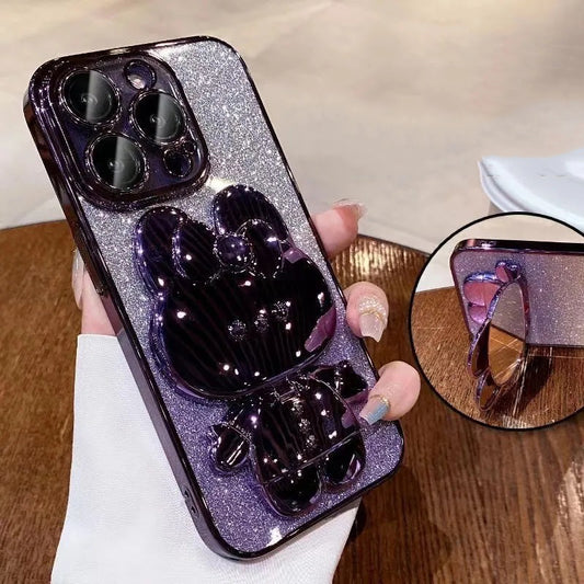 Rabbit Mirror Holder Gradient Glittering Phone Case