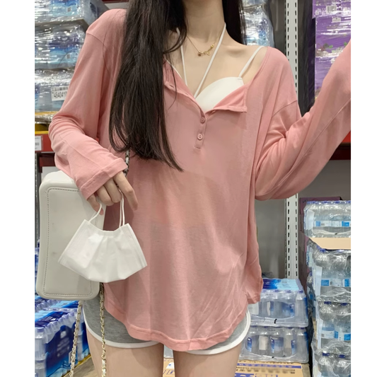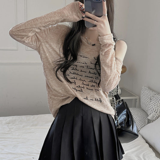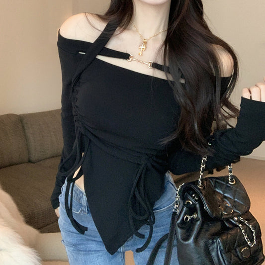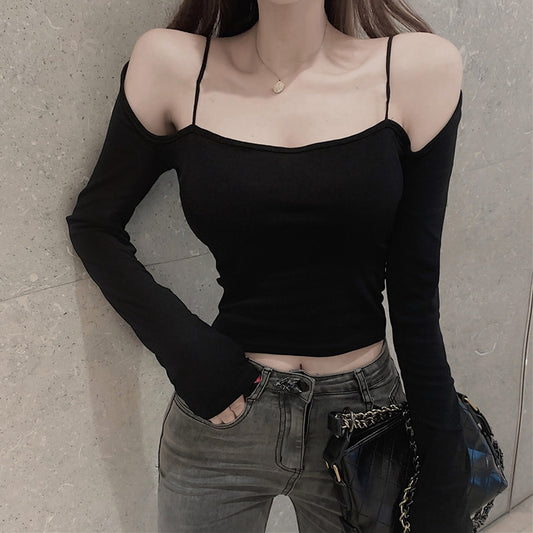 Off-The-Shoulder Top Suspender Long-Sleeve T-Shirt