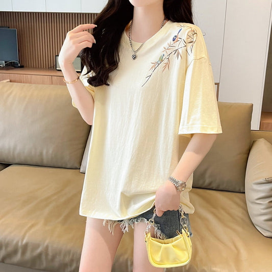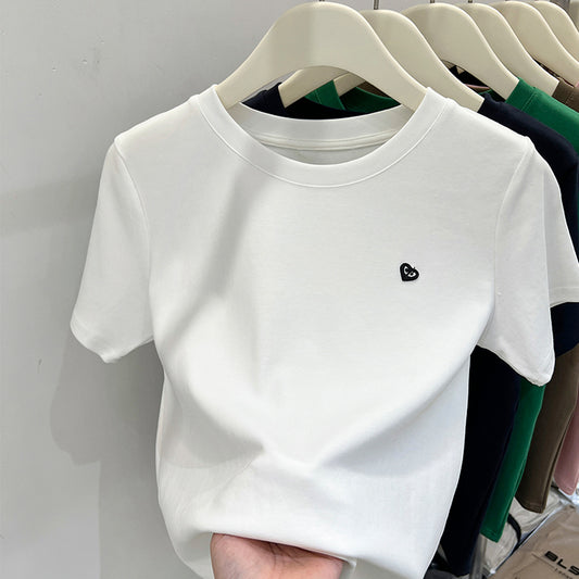 Heart Embroidered Loose Short Sleeve T-Shirt