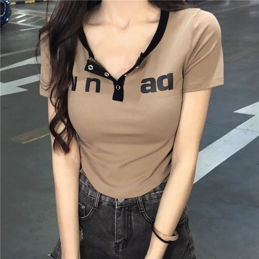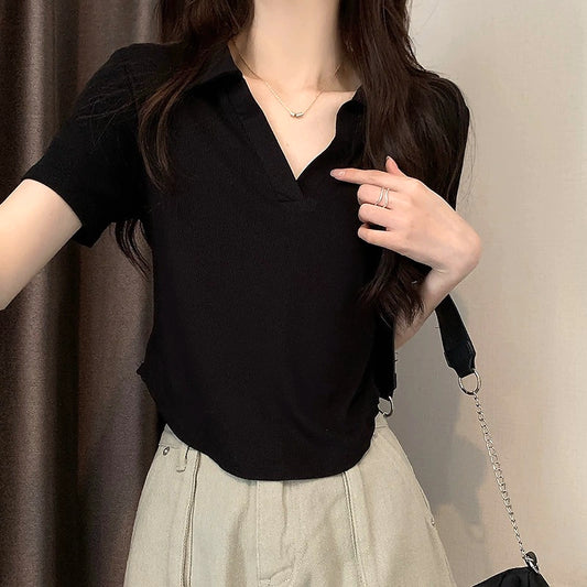 V-Neck Casual Slim Stretch Crop Top T-Shirt