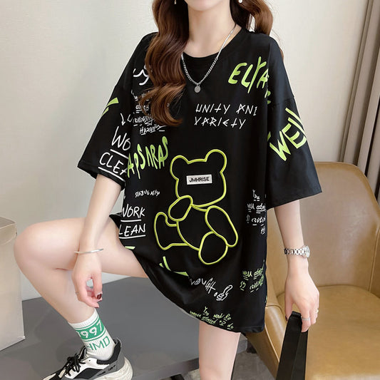 Rabbit Letter Print Round Neck Short-Sleeved T-Shirt