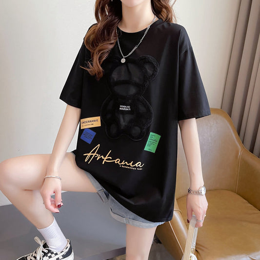 Loose Large Size Three-Dimensional Flower Short-Sleeved T-Shirt