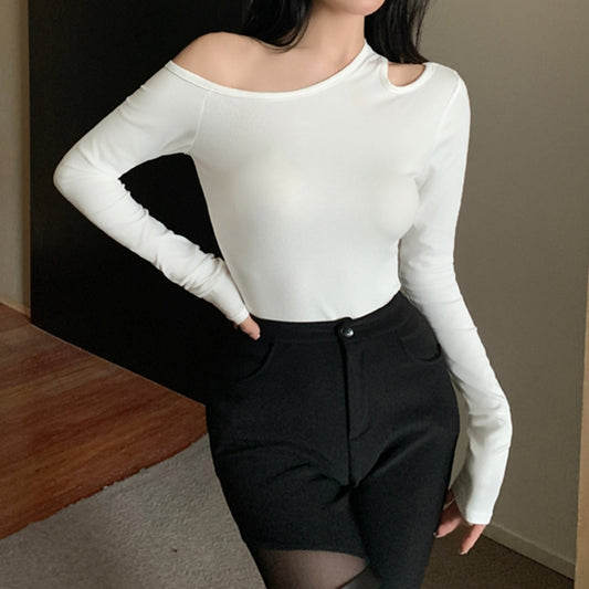 Off-The-Shoulder Long-Sleeved Round Neck T-Shirt Top