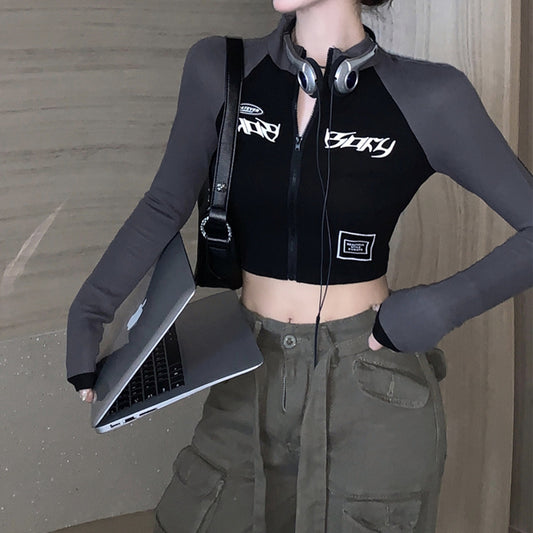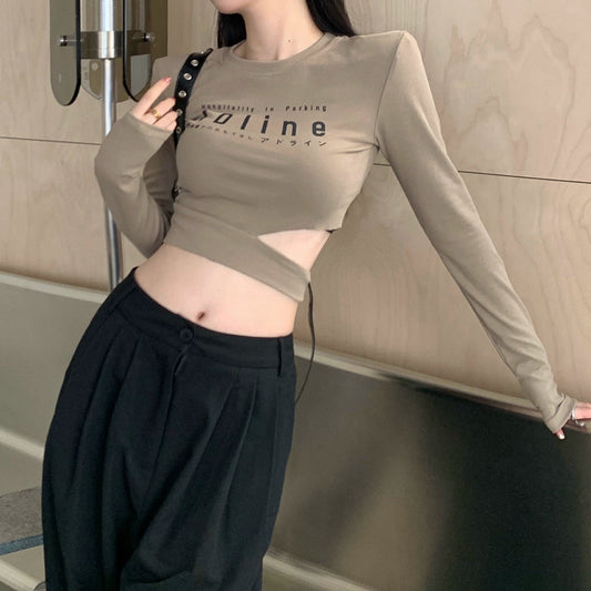 Hollow Long-Sleeve Skinny Cropped T-Shirt Top