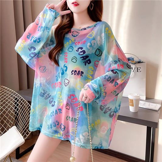 Tie-Dyed Long-Sleeved T-Shirt Sunscreen Shirt