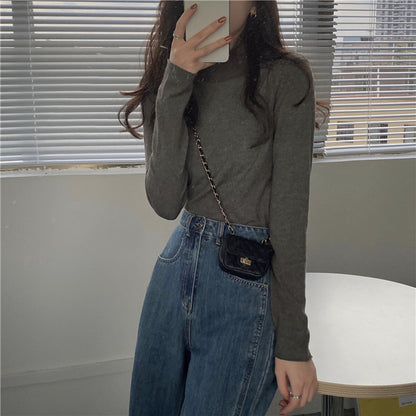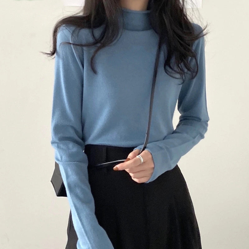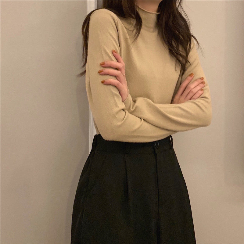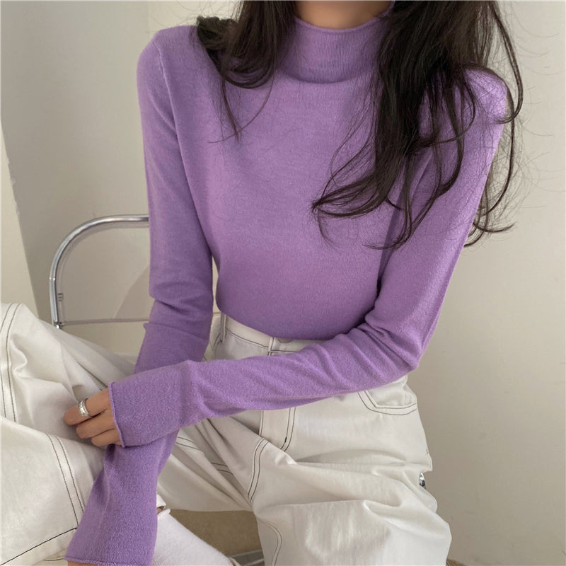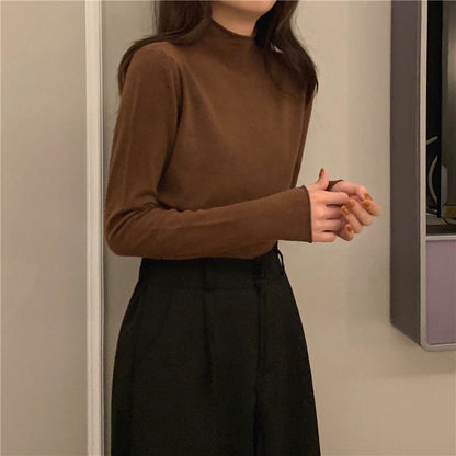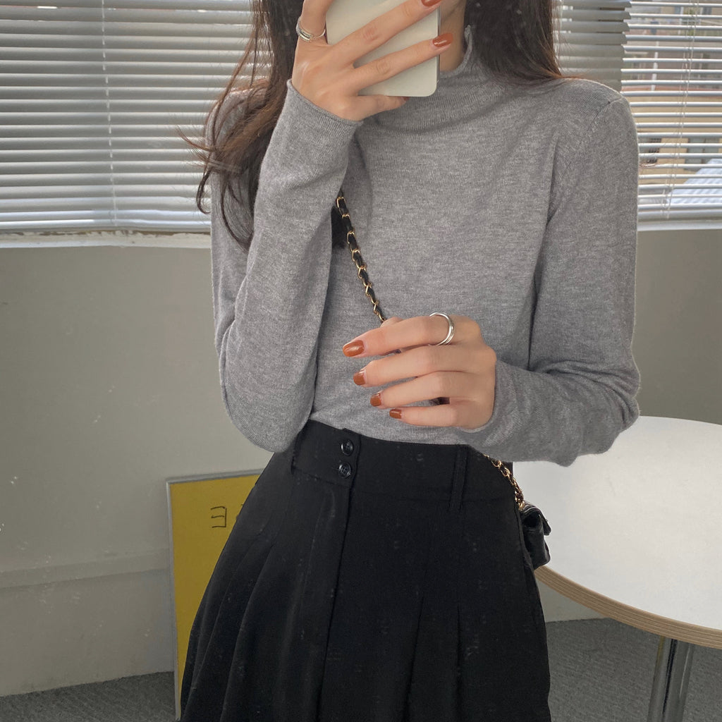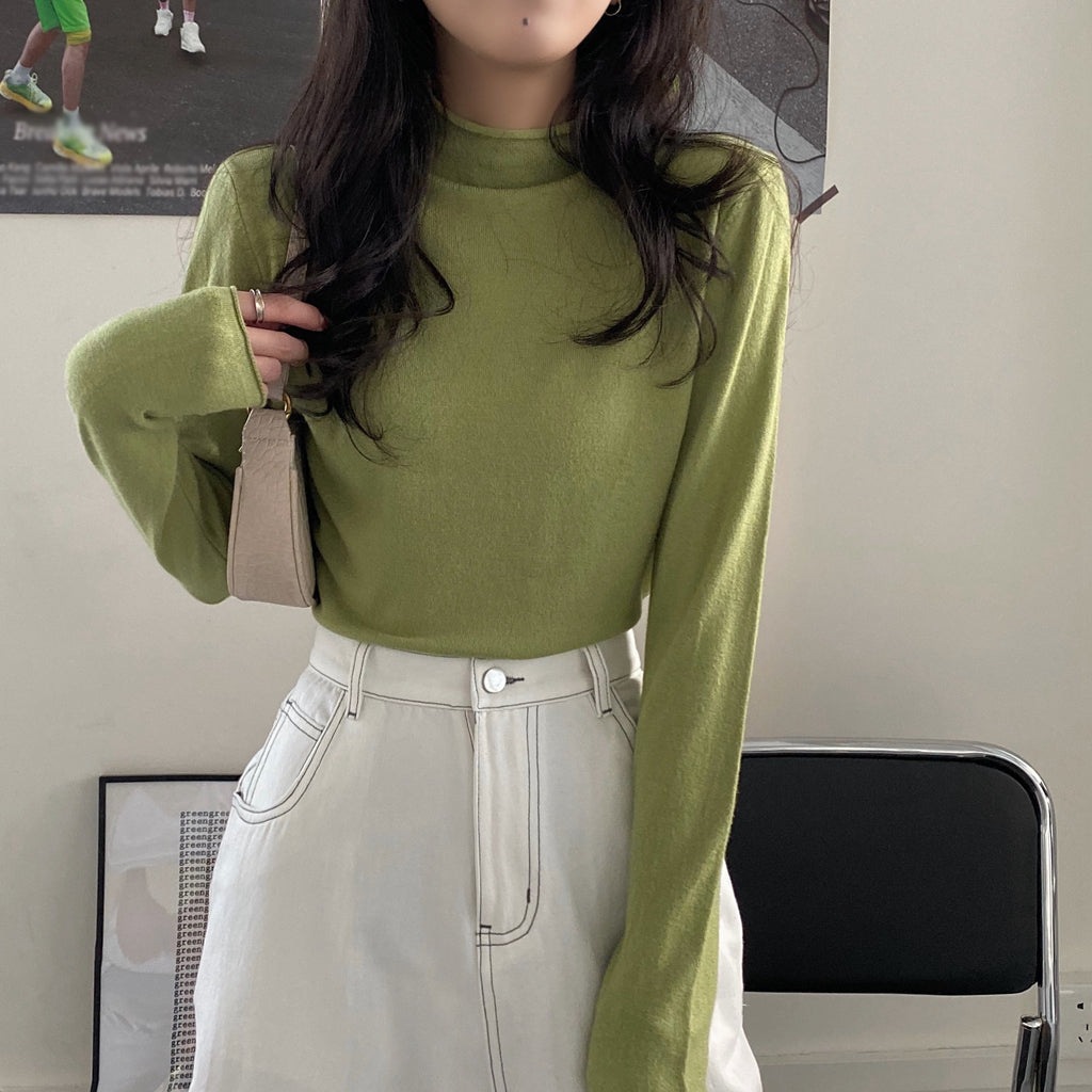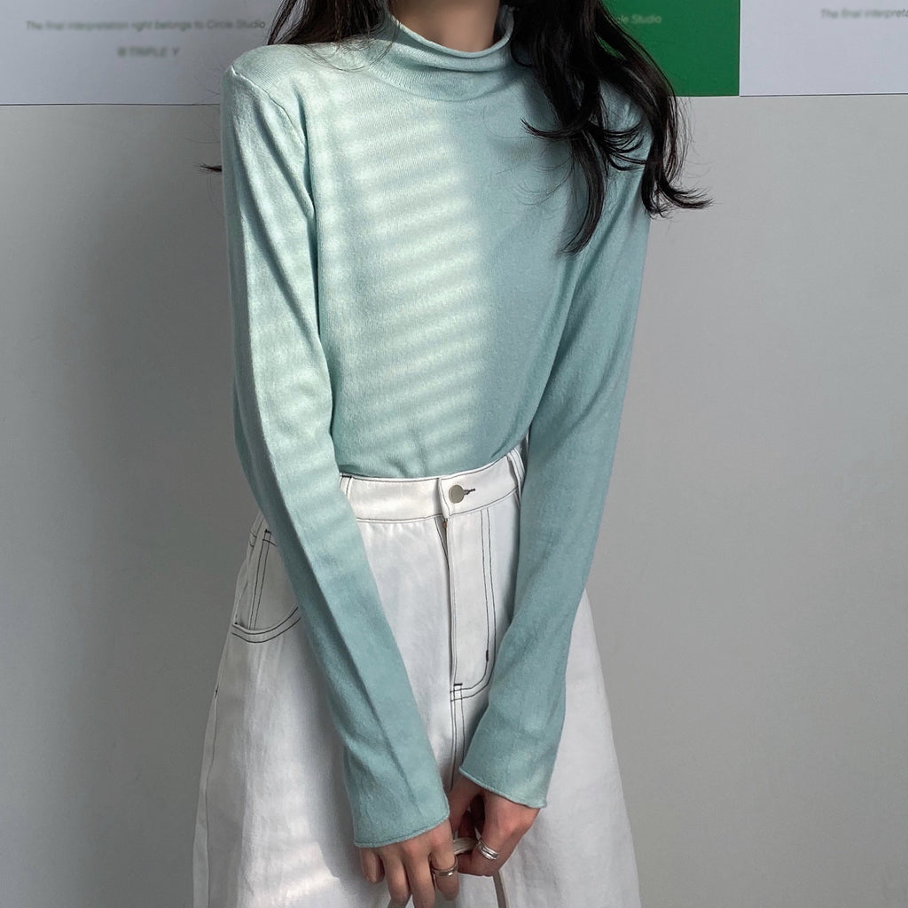 Half High Round Neck Knitted Long Sleeve Top
