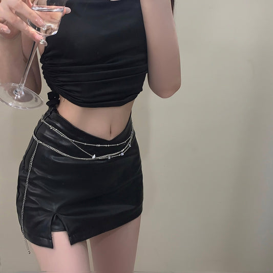 French Metal Thin Chain Pu Braided Waist Chain Accessories