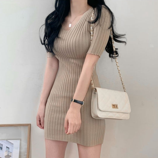 New High Waist Sexy Split Short Sleeve Hip Dress