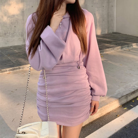 Purple Long Sleeve Sweatshirt Bodycon Dress