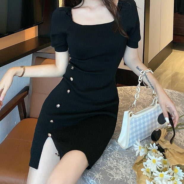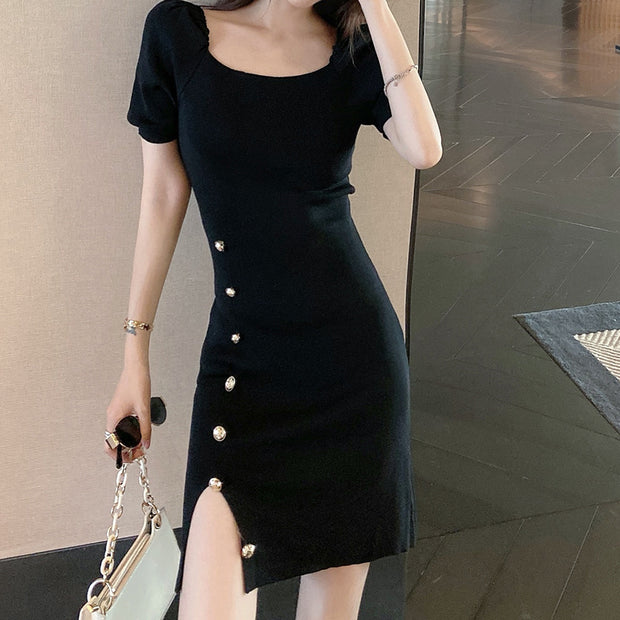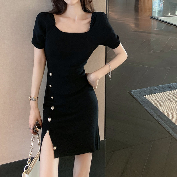 New High Waist Sexy Split Short Sleeve Hip Dress