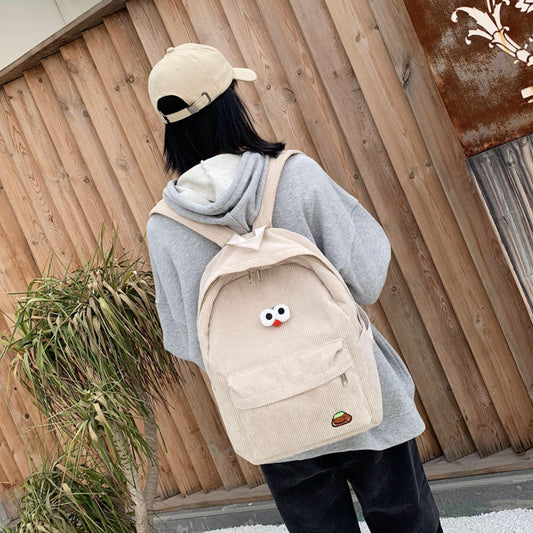 Corduroy Zipper Casual College Backpack Schoolbag