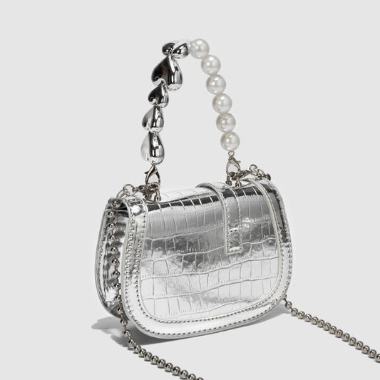 Pearl Chain Mini Silver Handbag Crossbody Bag