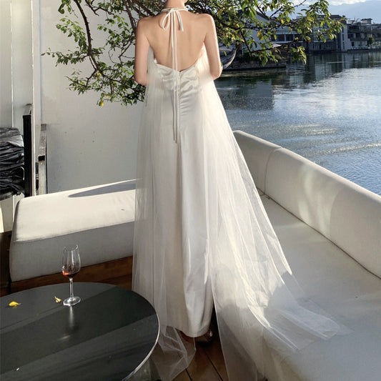 Backless Halter Neck V-Neck Seaside Holiday Dress