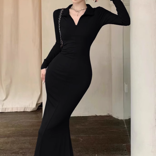 Bodycon Black Hip-Hugging Long-Sleeved Dress