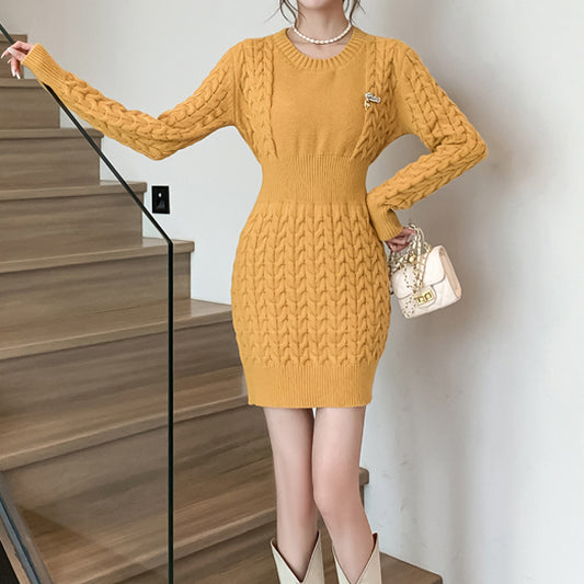Round Neck Linen Sweater Hip-Covering Knitted Dress