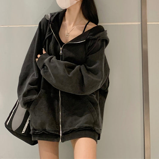 Loose Oversized Colorblock Cardigan Sweatshirt