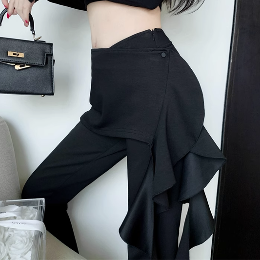 Raw Edge Long-Sleeved Shirt Leather Skirt Set