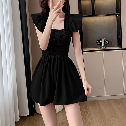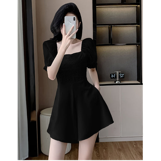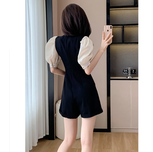 Temperament Waist V-Neck Puff Sleeve One-Piece Shorts Suit